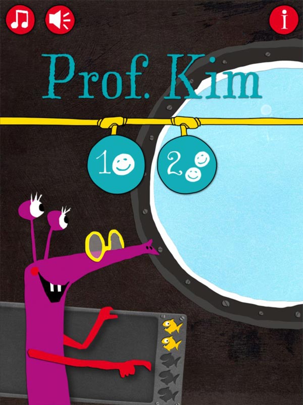 Und so startet das Spiel: Der stieläugige, lilafarbene Professor Kim guckt durch ein Bullauge in eine fantastische Unterwasserwelt. Hier schwimmen knallbunte Fische, gelbe Muscheln, lachende Kraken, giftgrüne U-Boote, geheimnisvolle Flaschenpost-Flaschen, rothaarige Meerjungfrauen, geöffnete Schatztruhen und sogar Elefanten mit Taucherbrillen wild durcheinander.