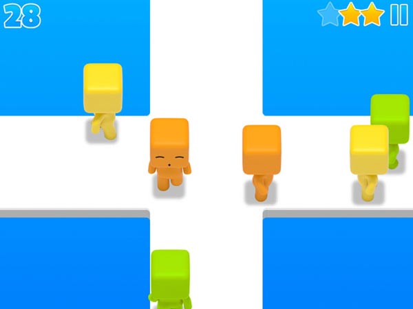 Der Spieler muss die blauen, grünen und gelben Kerle mit den Quadratschädeln im Blick behalten. Durch sanftes Anstupsen wechseln die "Stubies" sofort die Laufrichtung. Ziel ist es, eine bestimme Anzahl gleichfarbiger Wesen aufeinander treffen zu lassen - damit die sich dann in Luft aufzulösen: Tetris lässt grüßen!