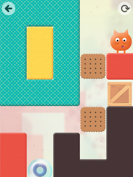 In dem Spiel mit den zwei unterschiedlichen Schwierigkeitsstufen versperren am Anfang quadratische Kekse den Weg. Kein Problem: Schnell drauf getippt und schon brechen sie auseinander und die Denkkugel setzt ihren Weg fort. Doch kurz darauf stehen Holzkisten im Weg - und die sind nicht so leicht zu beseitigen. Das gilt auch später für merkwürdig geformte Ballons, hartnäckige Felsen und glühende Kohle.