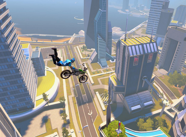 "Trials Fusion" ist ein Rennspiel, bei dem der Spieler mit einem Motorrad durch schmutzige Wildnis, aber auch über blitzsaubere futuristische Straßen, die von gläsernen Wolkenkratzern eingerahmt werden, fährt.