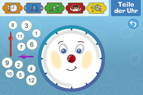 Diese App will Kindern spielerisch vermitteln, was es mit der - analogen - Uhr auf sich hat. In dieser Mischung aus Erklärung und Minispielen geht es zum Beispiel um Viertelstunden oder darum, ein Ziffernblatt zusammenbauen und die richtige Uhrzeit einzustellen.