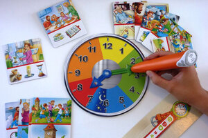 Die Uhrzeit lesen zu lernen ist kein leichtes Unterfangen. Doch mit diesem Spiel werden Kinder schon nach einigen Spielrunden stolz verkünden können: „Ich weiß, wie spät es ist!“