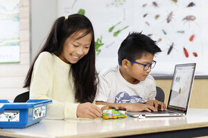 Dennoch war es vor sieben Jahren eine große Überraschung, als Lego Education, wie die Bildungsabteilung der Dänen heißt, ihren ersten WeDo-Kasten präsentierten. Natürlich mit Legosteinen, aber eben auch programmierbaren Elementen, die ihre Befehle per PC bekamen. Überzeugender hatte bis dahin niemand gezeigt, dass bereits Grundschüler mit dem Programmieren loslegen können.