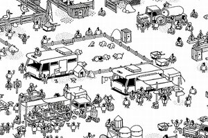 Die verschiedenen Orte – wie zum Beispiel eine Farm, ein Campingplatz oder eine pulsierende Stadt – lassen sich im Überblick anschauen, man kann aber die gewünschten Bildausschnitte auch bequem heranzoomen, um sich die Details ganz genau anzusehen. Die zappelnden, tanzenden oder laufenden Personen, die fahrenden Autos, Busse oder Transporter, die Zelte, Felder oder Häuser können dann akribisch inspiziert werden.