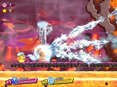 Soweit, so bekannt. Seitdem ihn aber ein rosafarbenes Herz getroffen hat, erlangt der Held ungeahnte Möglichkeiten. Nun kann er seine Gegner zu Freunden machen und hat schnell ein Gefolge beisammen. Das unterstützt ihn mit den verschiedensten Fähigkeiten, mit dem Schwert, mit einer Bombe, mit Feuer oder Eis. Besonders cool: Kirby und die anderen können ihre Waffen upgraden, dann wird schnell aus dem Schwert ein Brutzelschwert oder aus Wasser und Eis eine Zapfenlanze.