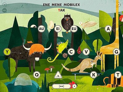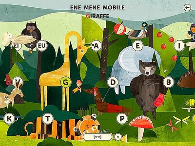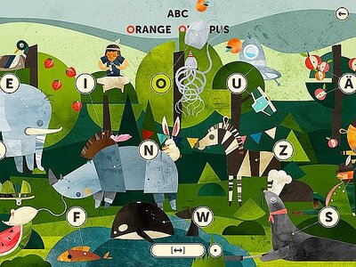 Die "Wald Tastatur" heißt so, weil in einem leporello-artigen Wald überall Tiere, Buchstaben und Gegenstände stecken, die allesamt spielerisch entdeckt werden sollen. Sobald zum Beispiel auf das "U" oder das Ufo getippt wird, hören Kinder die korrekte Aussprache dieses Buchstabens.
