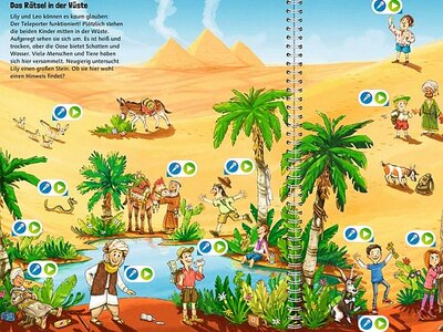 Mit dem altbekannten tiptoi-Stift konnten verschiedene Bilder und Texte im Buch angetippt werden, um dem Medium abenteuerliche Geräusche, Geschichten und lustige Gespräche zu entlocken.