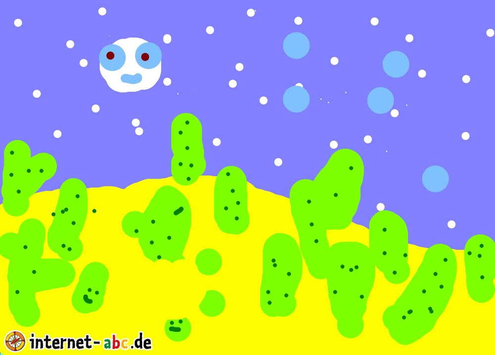 Das ist eine komische Wüste mit Kakteenfeld und versteckten Gesichtern