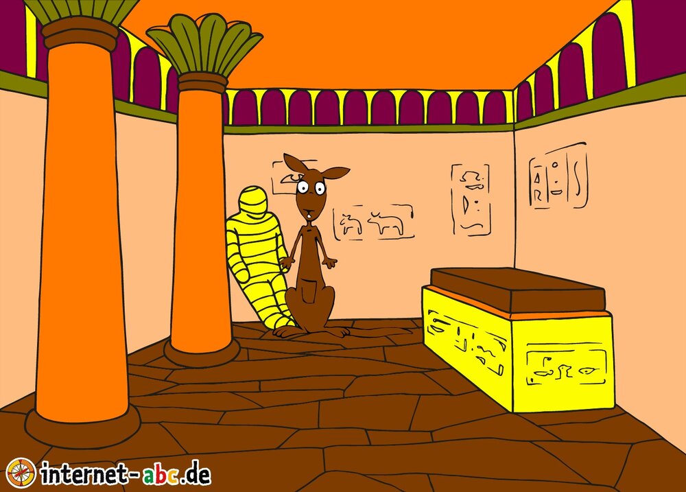 Das Känguru ist ausgelacht worden weil, es sich von einen Igel erschreckt hat und um sein Mut zu beweisen ist es in einen fahraonengrab gegangen