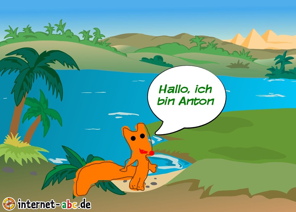 Das ist Anton und er sucht Freunde. Er ist schon um die ganze Welt gereist und hofft hier am Fluss einen Freund zu finden.