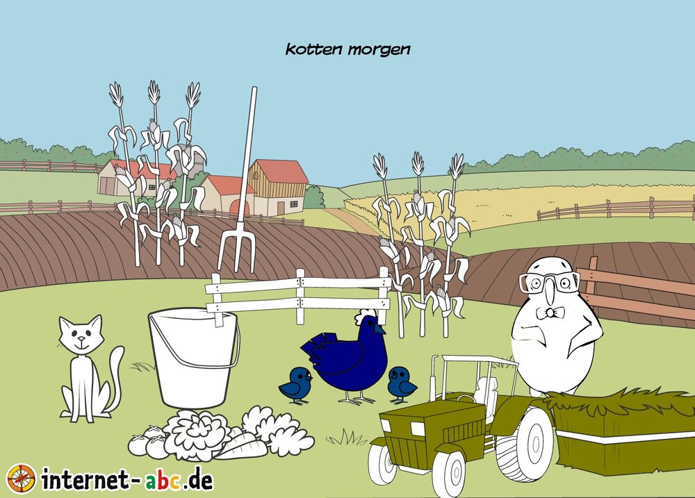 Mit Eddie zu den Hühnern? Mit Flizzy das Heu in die Scheune bringen? Malt ein Bauernhof-Bild mit dem Internet-ABC und schreibt eine schöne Geschichte dazu!