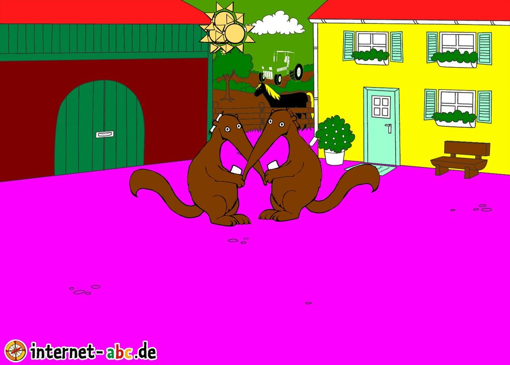 Mit Eddie zu den Hühnern? Mit Flizzy das Heu in die Scheune bringen? Malt ein Bauernhof-Bild mit dem Internet-ABC und schreibt eine schöne Geschichte dazu!
