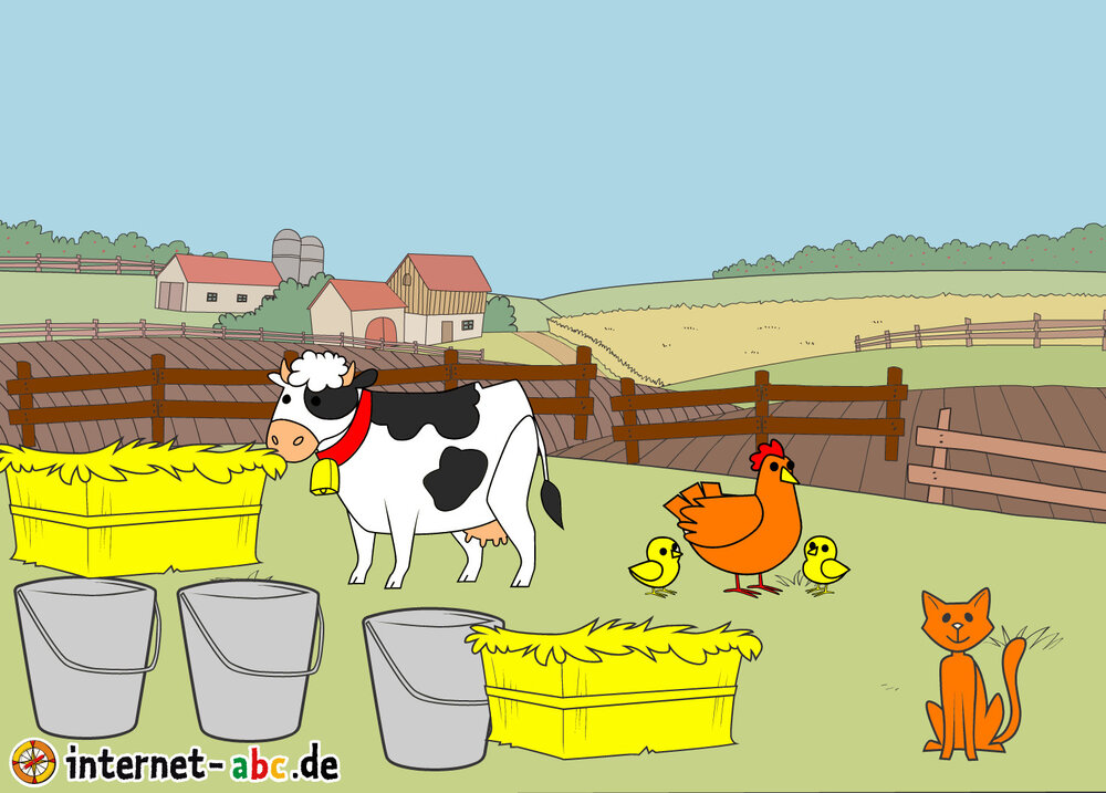 Mit Eddie zu den Hühnern? Mit Flizzy das Heu in die Scheune bringen? Malt ein Bauernhof-Bild mit dem Internet-ABC und schreibt eine schöne Geschichte dazu!