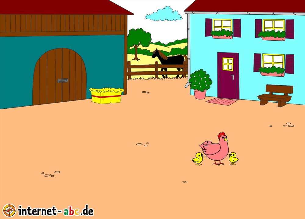 Mit Eddie zu den Hühnern? Mit Flizzy das Heu in die Scheune bringen? Malt ein Bauernhof-Bild mit dem Internet-ABC und schreibt eine schöne Geschichte dazu!