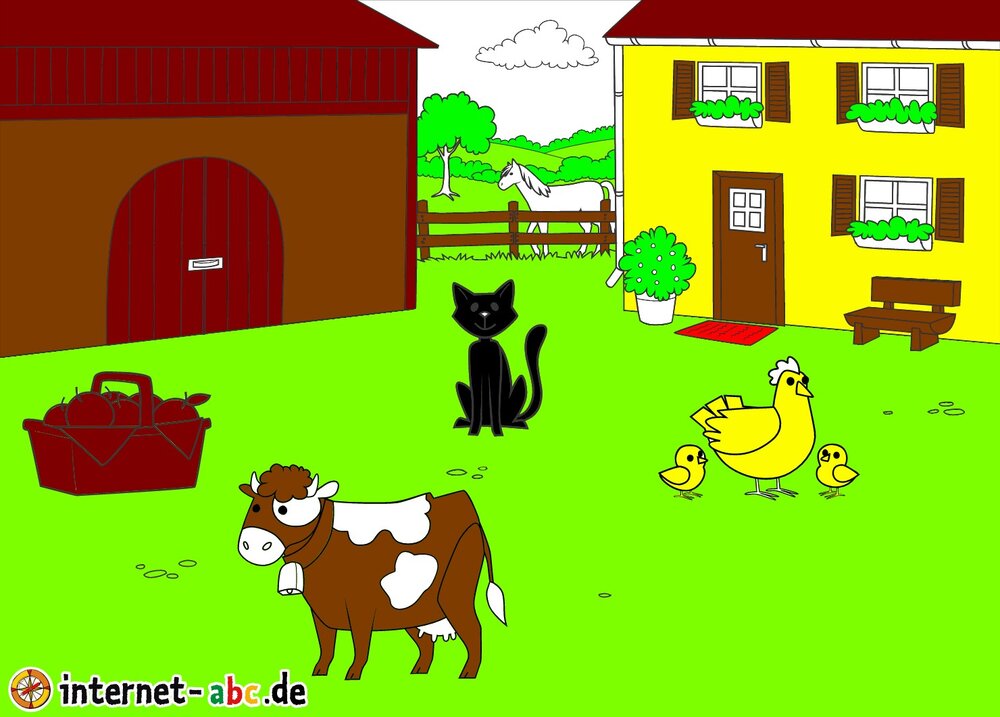 Mit Eddie zu den Hühnern? Mit Flizzy das Heu in die Scheune bringen? Malt ein Bauernhof-Bild mit dem Internet-ABC und schreibt eine schöne Geschichte dazu!