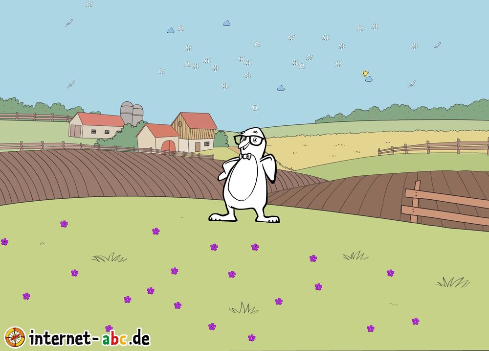 Mit Eddie zu den Hühnern? Mit Flizzy das Heu in die Scheune bringen? Malt ein Bauernhof-Bild mit dem Internet-ABC und schreibt eine schöne Geschichte dazu!