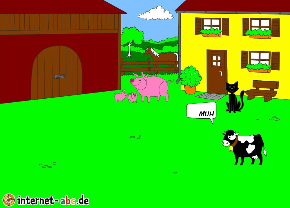 Mit Eddie zu den Hühnern? Mit Flizzy das Heu in die Scheune bringen? Malt ein Bauernhof-Bild mit dem Internet-ABC und schreibt eine schöne Geschichte dazu!