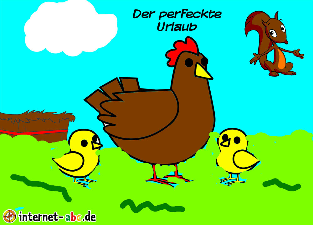 Mit Eddie zu den Hühnern? Mit Flizzy das Heu in die Scheune bringen? Malt ein Bauernhof-Bild mit dem Internet-ABC und schreibt eine schöne Geschichte dazu!