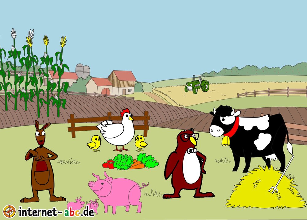 Mit Eddie zu den Hühnern? Mit Flizzy das Heu in die Scheune bringen? Malt ein Bauernhof-Bild mit dem Internet-ABC und schreibt eine schöne Geschichte dazu!