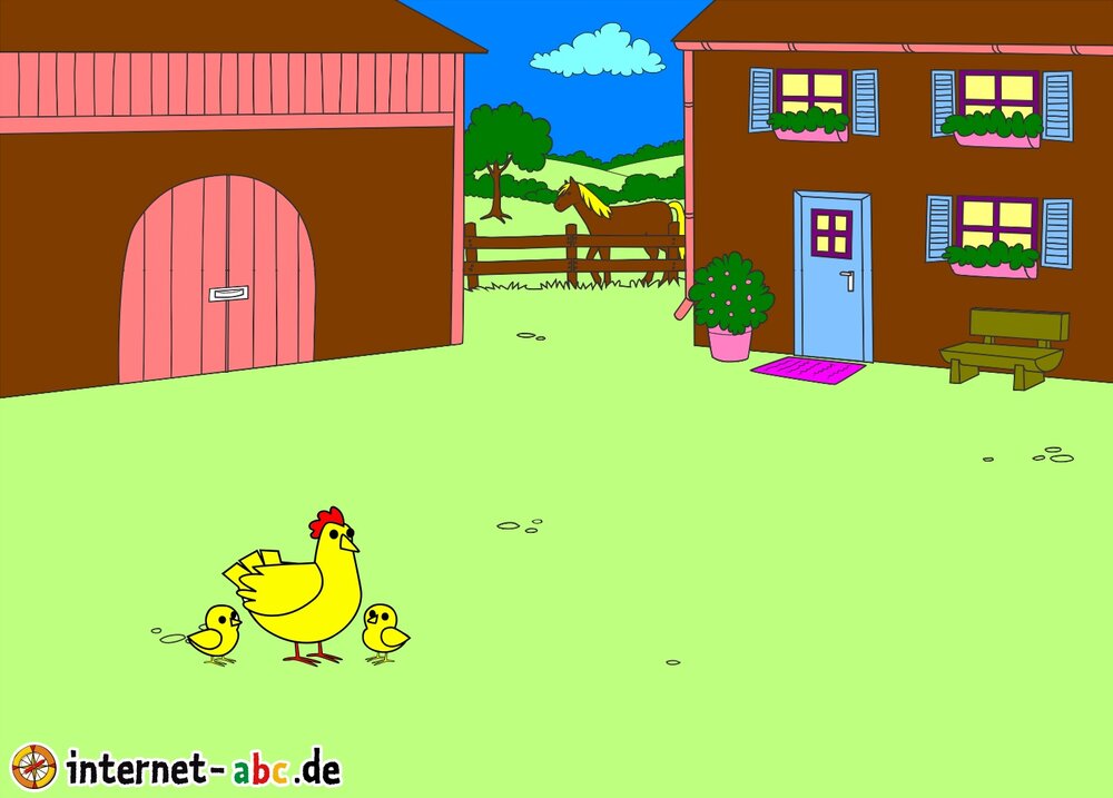 Mit Eddie zu den Hühnern? Mit Flizzy das Heu in die Scheune bringen? Malt ein Bauernhof-Bild mit dem Internet-ABC und schreibt eine schöne Geschichte dazu!