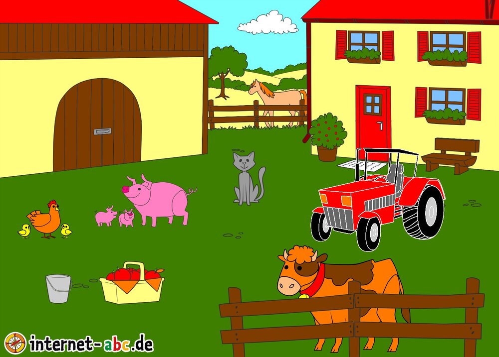 Mit Eddie zu den Hühnern? Mit Flizzy das Heu in die Scheune bringen? Malt ein Bauernhof-Bild mit dem Internet-ABC und schreibt eine schöne Geschichte dazu!