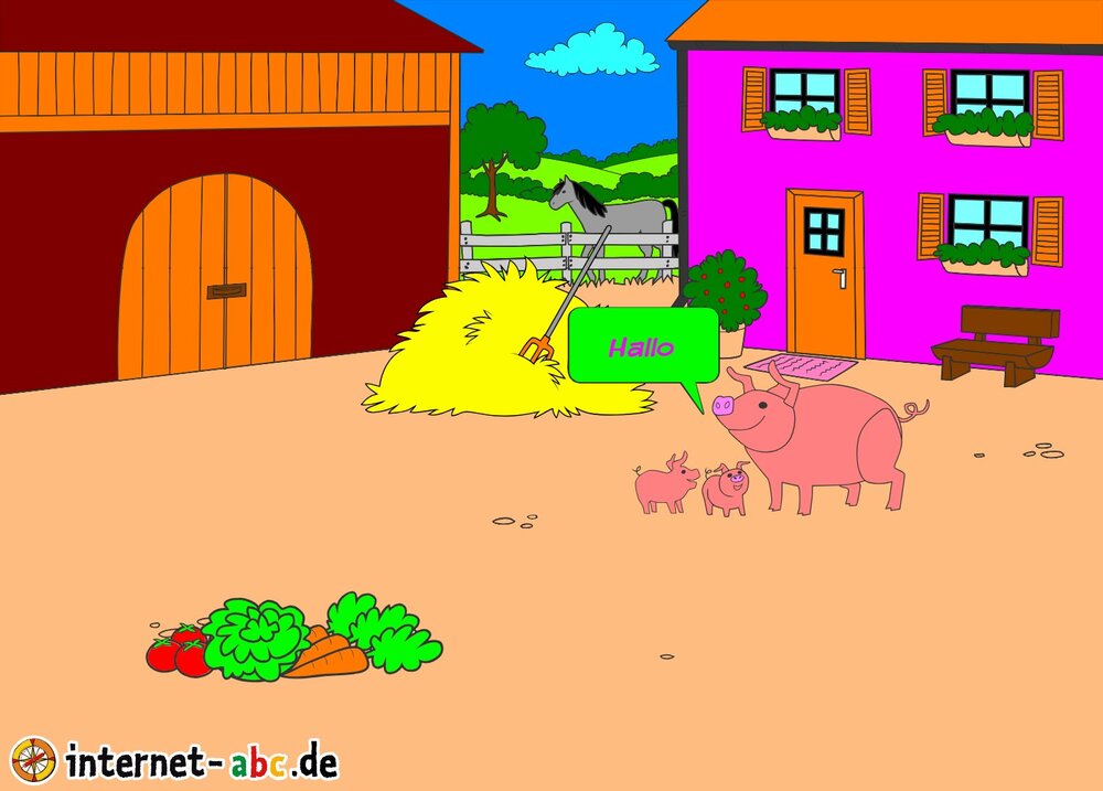Mit Eddie zu den Hühnern? Mit Flizzy das Heu in die Scheune bringen? Malt ein Bauernhof-Bild mit dem Internet-ABC und schreibt eine schöne Geschichte dazu!