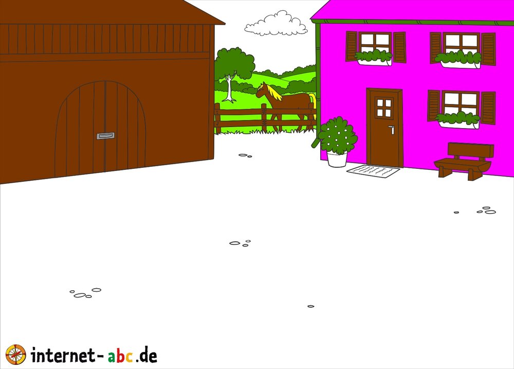Mit Eddie zu den Hühnern? Mit Flizzy das Heu in die Scheune bringen? Malt ein Bauernhof-Bild mit dem Internet-ABC und schreibt eine schöne Geschichte dazu!