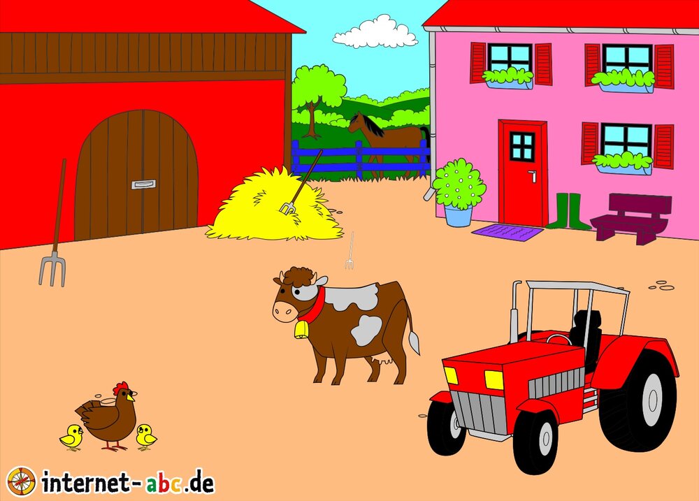 Mit Eddie zu den Hühnern? Mit Flizzy das Heu in die Scheune bringen? Malt ein Bauernhof-Bild mit dem Internet-ABC und schreibt eine schöne Geschichte dazu!