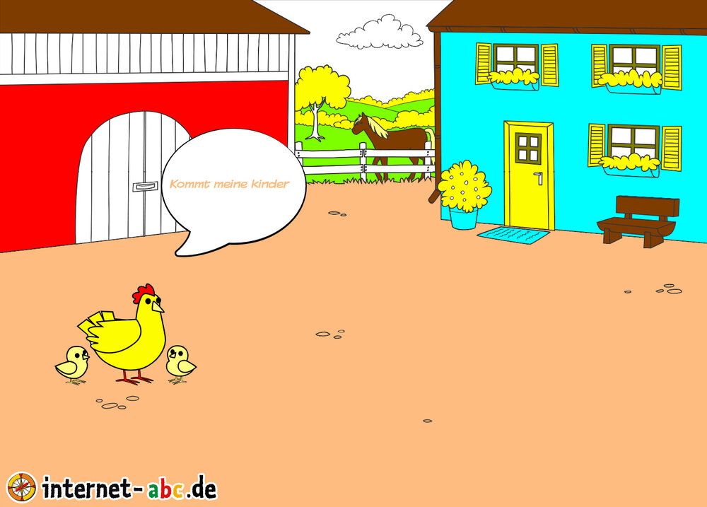 Mit Eddie zu den Hühnern? Mit Flizzy das Heu in die Scheune bringen? Malt ein Bauernhof-Bild mit dem Internet-ABC und schreibt eine schöne Geschichte dazu!