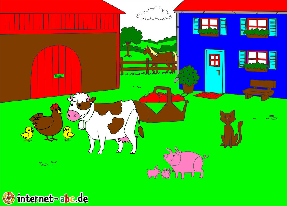 Mit Eddie zu den Hühnern? Mit Flizzy das Heu in die Scheune bringen? Malt ein Bauernhof-Bild mit dem Internet-ABC und schreibt eine schöne Geschichte dazu!