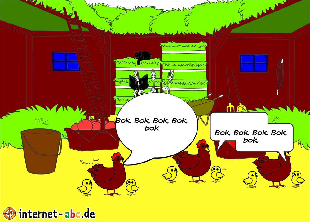 Mit Eddie zu den Hühnern? Mit Flizzy das Heu in die Scheune bringen? Malt ein Bauernhof-Bild mit dem Internet-ABC und schreibt eine schöne Geschichte dazu!