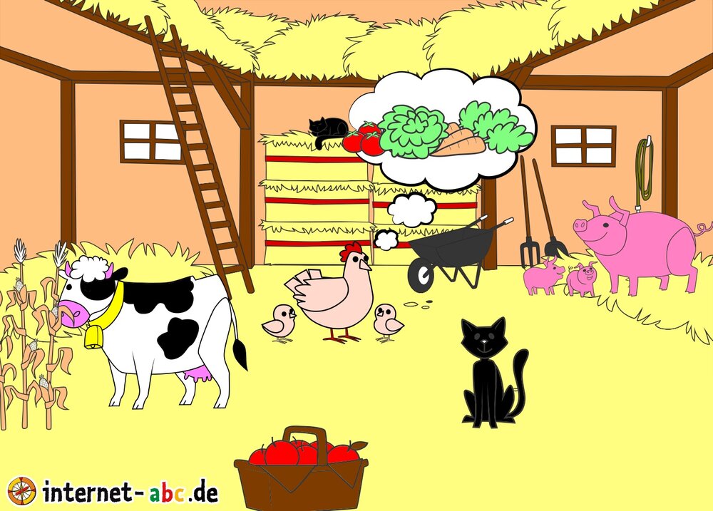 Mit Eddie zu den Hühnern? Mit Flizzy das Heu in die Scheune bringen? Malt ein Bauernhof-Bild mit dem Internet-ABC und schreibt eine schöne Geschichte dazu!