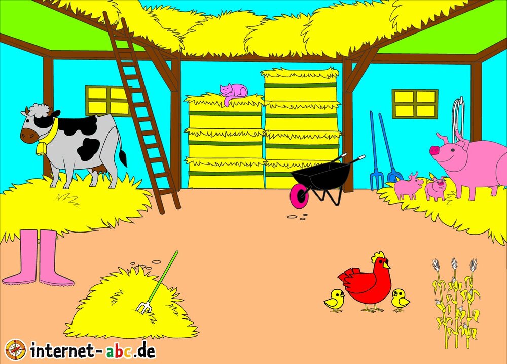 Mit Eddie zu den Hühnern? Mit Flizzy das Heu in die Scheune bringen? Malt ein Bauernhof-Bild mit dem Internet-ABC und schreibt eine schöne Geschichte dazu!