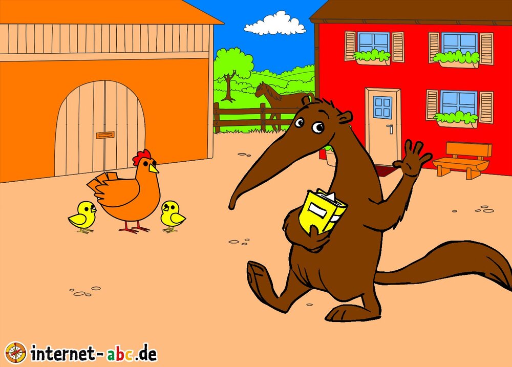 Mit Eddie zu den Hühnern? Mit Flizzy das Heu in die Scheune bringen? Malt ein Bauernhof-Bild mit dem Internet-ABC und schreibt eine schöne Geschichte dazu!