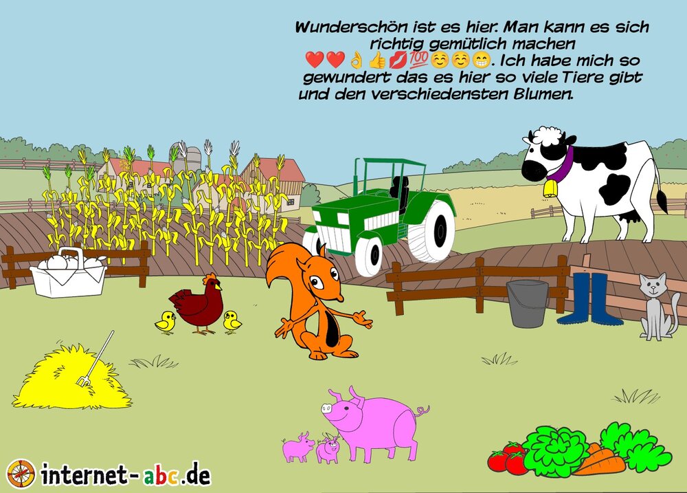 Mit Eddie zu den Hühnern? Mit Flizzy das Heu in die Scheune bringen? Malt ein Bauernhof-Bild mit dem Internet-ABC und schreibt eine schöne Geschichte dazu!