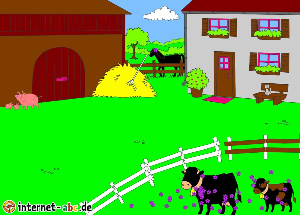 Mit Eddie zu den Hühnern? Mit Flizzy das Heu in die Scheune bringen? Malt ein Bauernhof-Bild mit dem Internet-ABC und schreibt eine schöne Geschichte dazu!