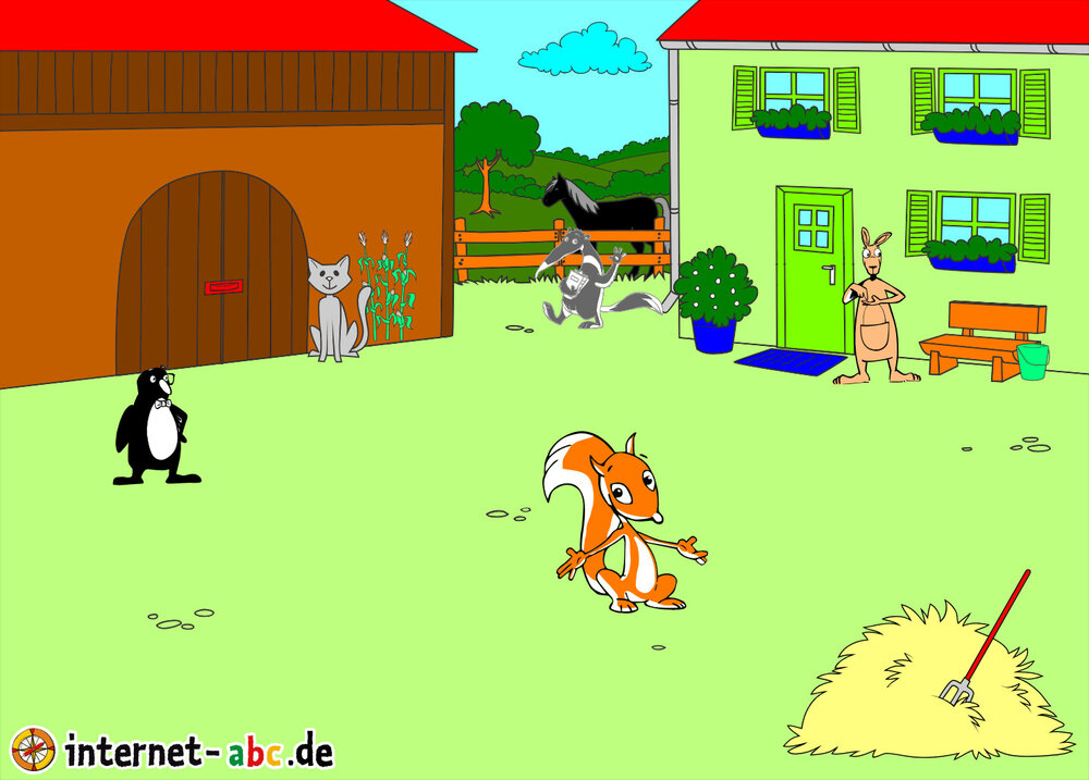 Mit Eddie zu den Hühnern? Mit Flizzy das Heu in die Scheune bringen? Malt ein Bauernhof-Bild mit dem Internet-ABC und schreibt eine schöne Geschichte dazu!