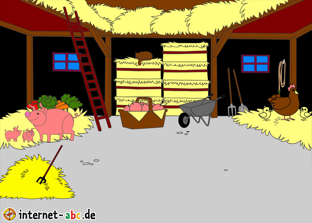 Mit Eddie zu den Hühnern? Mit Flizzy das Heu in die Scheune bringen? Malt ein Bauernhof-Bild mit dem Internet-ABC und schreibt eine schöne Geschichte dazu!