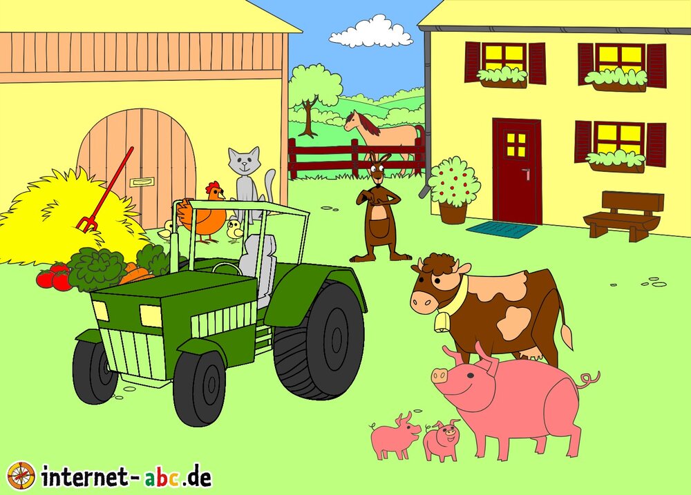 Mit Eddie zu den Hühnern? Mit Flizzy das Heu in die Scheune bringen? Malt ein Bauernhof-Bild mit dem Internet-ABC und schreibt eine schöne Geschichte dazu!