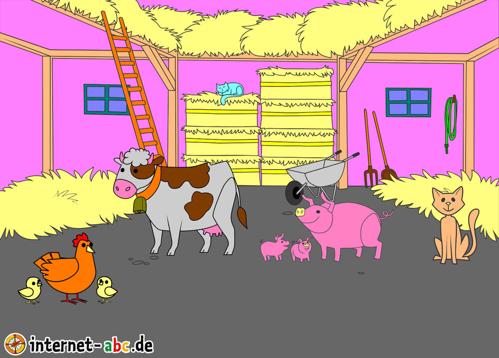 Mit Eddie zu den Hühnern? Mit Flizzy das Heu in die Scheune bringen? Malt ein Bauernhof-Bild mit dem Internet-ABC und schreibt eine schöne Geschichte dazu!