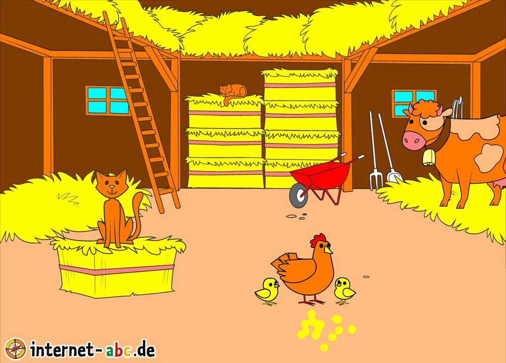 Mit Eddie zu den Hühnern? Mit Flizzy das Heu in die Scheune bringen? Malt ein Bauernhof-Bild mit dem Internet-ABC und schreibt eine schöne Geschichte dazu!