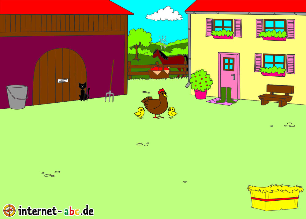 Mit Eddie zu den Hühnern? Mit Flizzy das Heu in die Scheune bringen? Malt ein Bauernhof-Bild mit dem Internet-ABC und schreibt eine schöne Geschichte dazu!