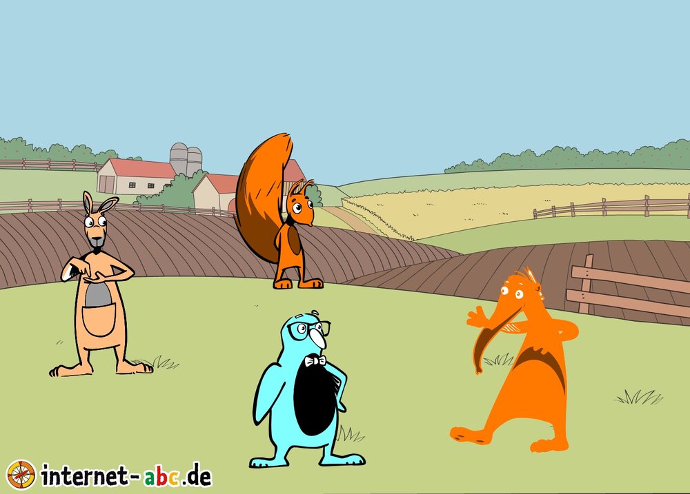 Die vier Freunde treffen sich auf dem Bauernhof