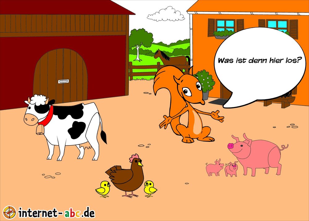 Mit Eddie zu den Hühnern? Mit Flizzy das Heu in die Scheune bringen? Malt ein Bauernhof-Bild mit dem Internet-ABC und schreibt eine schöne Geschichte dazu!