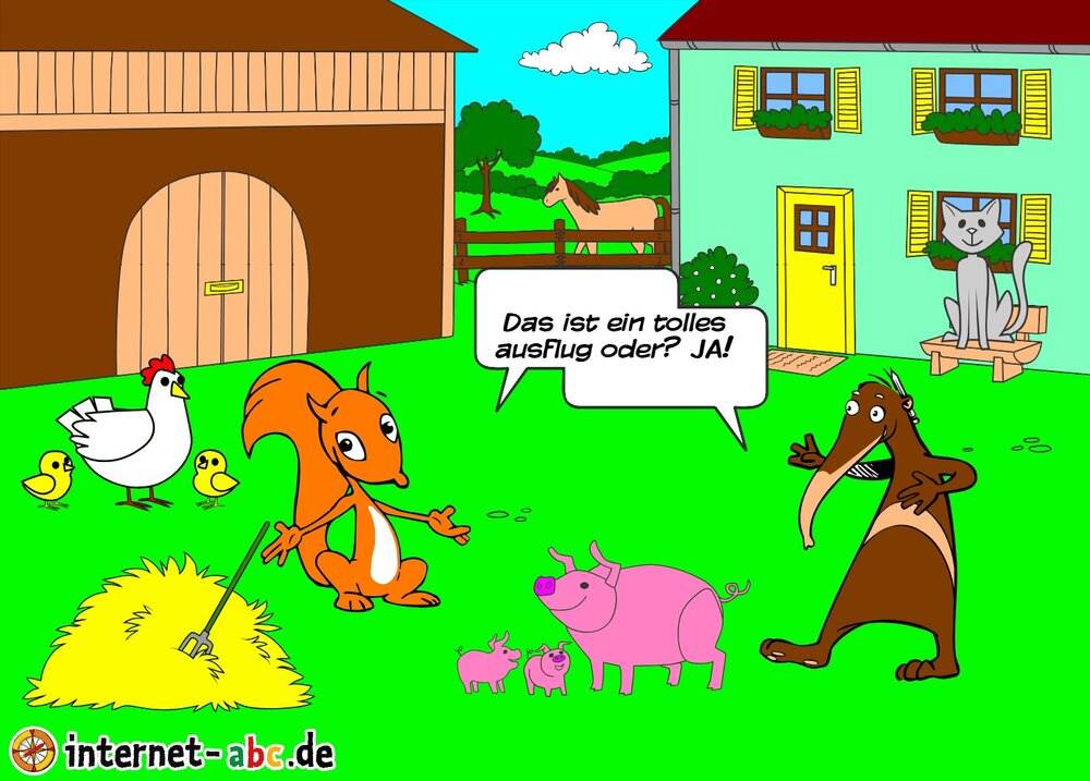 Mit Eddie zu den Hühnern? Mit Flizzy das Heu in die Scheune bringen? Malt ein Bauernhof-Bild mit dem Internet-ABC und schreibt eine schöne Geschichte dazu!