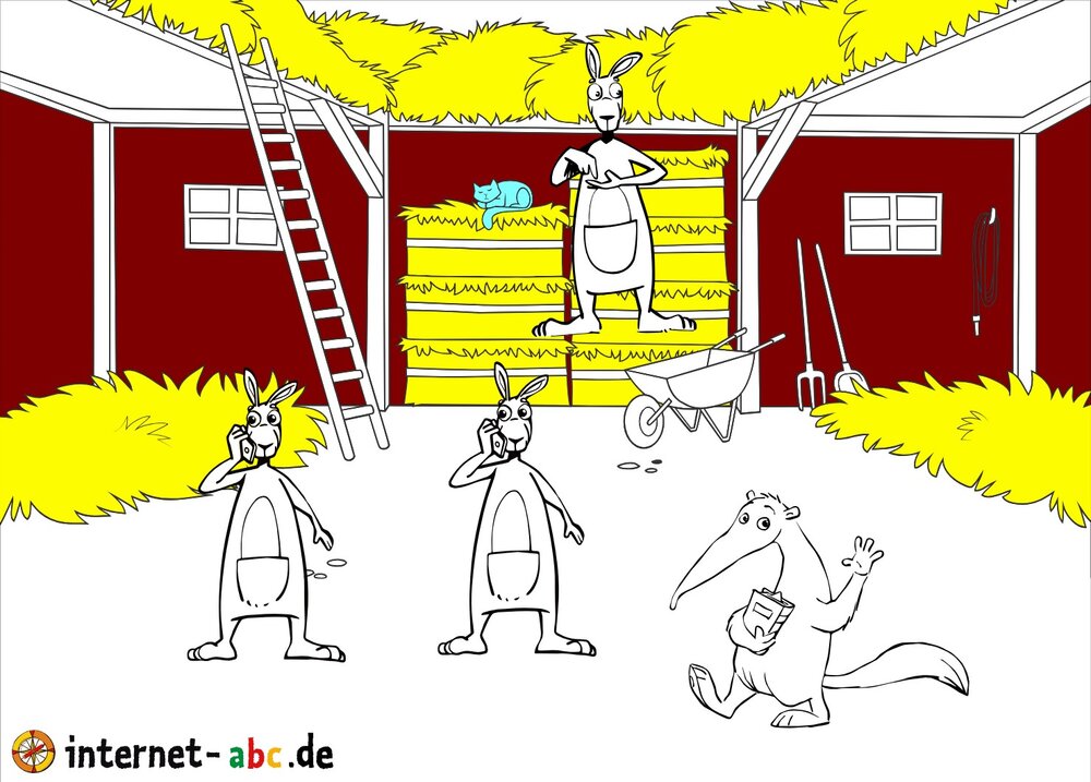 Mit Eddie zu den Hühnern? Mit Flizzy das Heu in die Scheune bringen? Malt ein Bauernhof-Bild mit dem Internet-ABC und schreibt eine schöne Geschichte dazu!