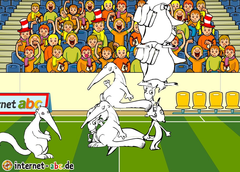 Flizzy, Jumpy, Eddie und Percy spielen Fußball. Male ein schönes Bild und schreibe etwas dazu!
