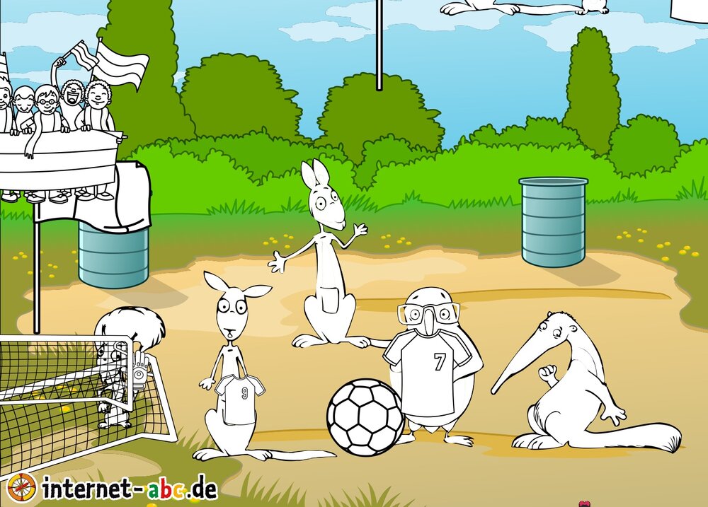 Flizzy, Jumpy, Eddie und Percy spielen Fußball. Male ein schönes Bild und schreibe etwas dazu!