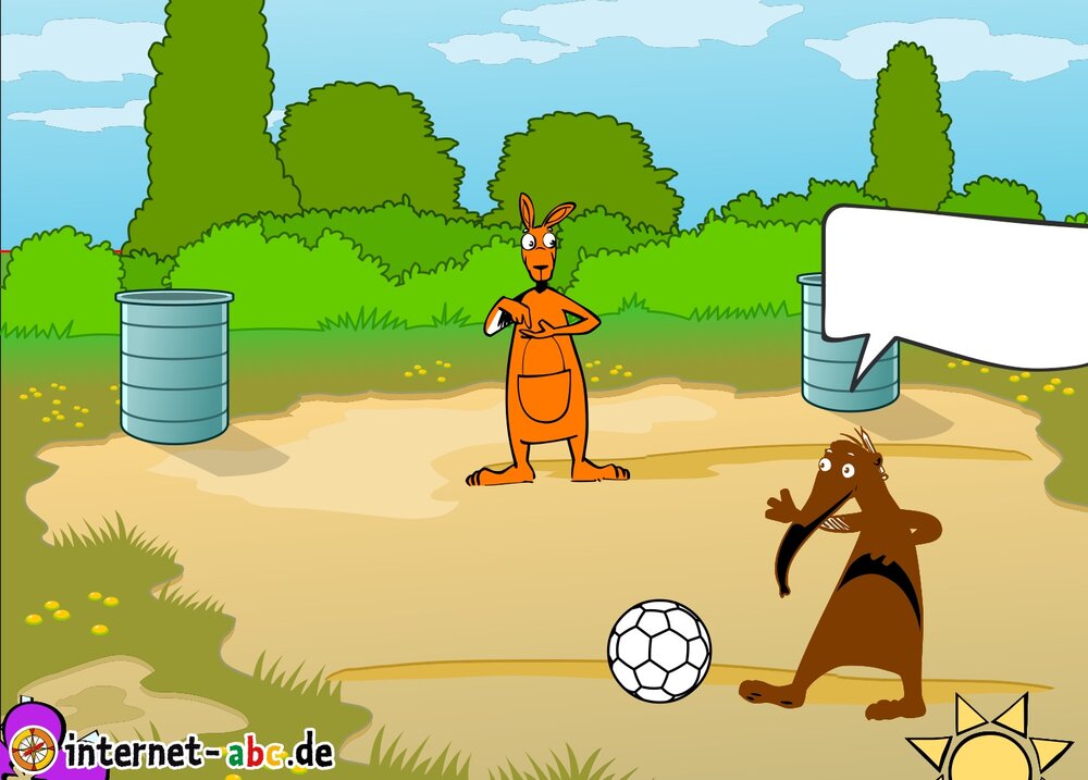 Flizzy, Jumpy, Eddie und Percy spielen Fußball. Male ein schönes Bild und schreibe etwas dazu!