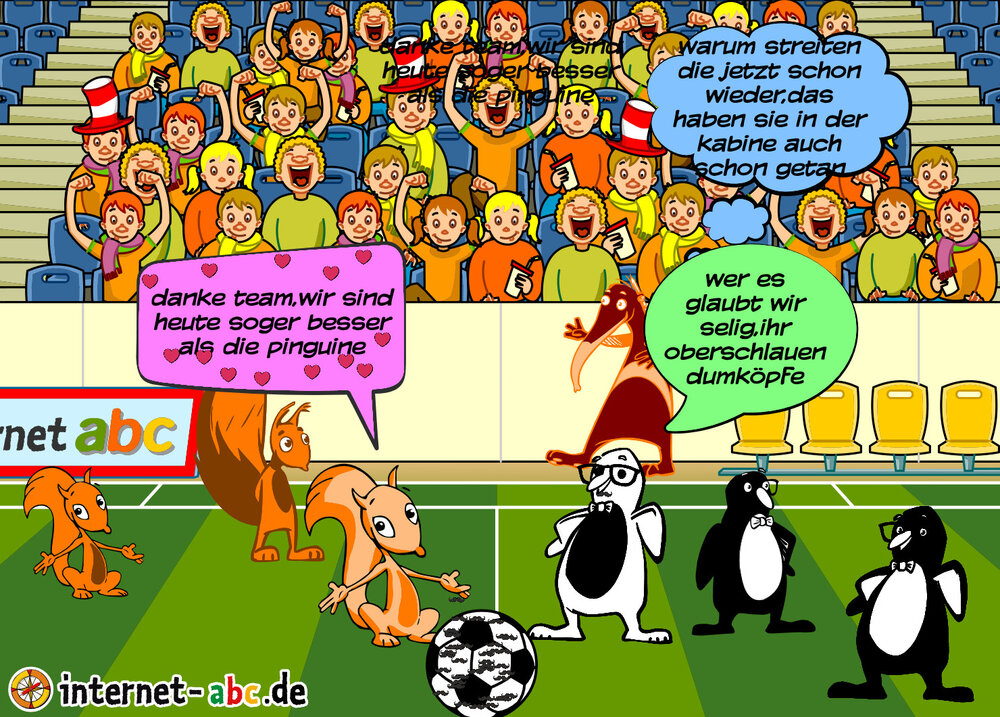 Flizzy, Jumpy, Eddie und Percy spielen Fußball. Male ein schönes Bild und schreibe etwas dazu!